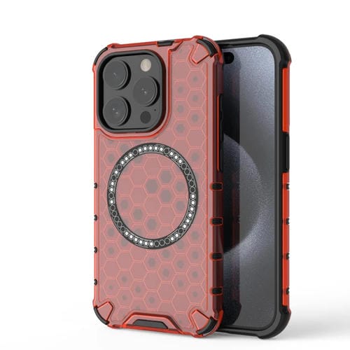 Funda para Teléfono iPhone 15 Pro Honeycomb Magnetic Ring a Prueba de Golpes (Rojo)
