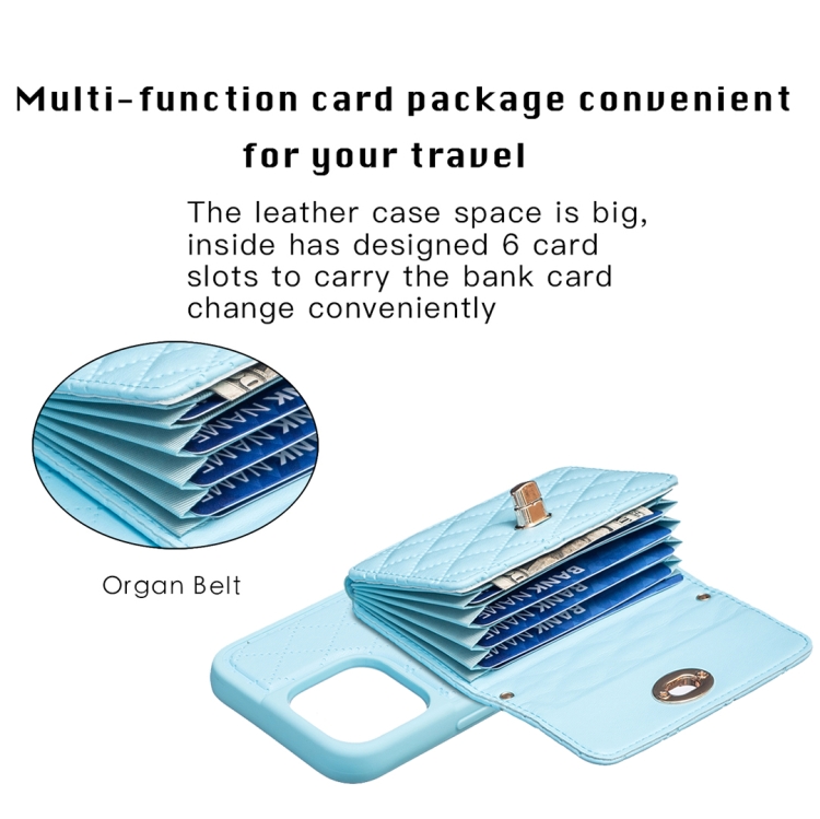 Funda Horizontal Wallet para iPhone 15 Pro Rhombic Leather (Azul)
