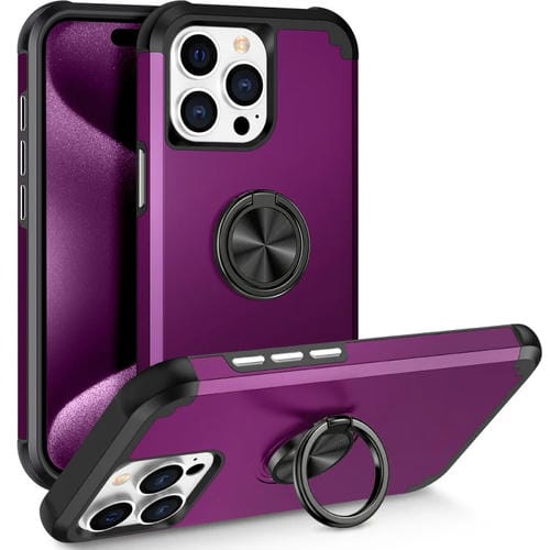 Funda Magnética para Teléfono iPhone 15 Pro L2 con Soporte de Anillo Giratorio (Púrpura Oscuro)