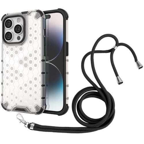 Funda para iPhone 15 Pro Honeycomb con Lanyard (Blanco)