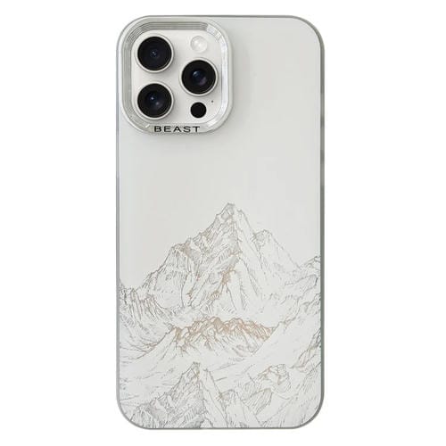 Estuche para Teléfono 2 en 1 iPhone 15 Pro Max con Marco de Galvanoplastia Aurora (Montañas Nevadas Blancas)