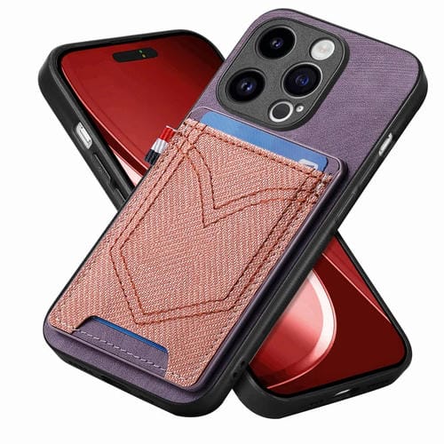 Funda para Teléfono iPhone 15 Pro Max Denim Texture Leather Skin con Ranura para Tarjeta (Púrpura)