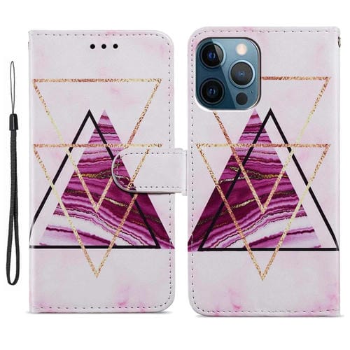 Estuche para Teléfono iPhone 15 Pro Max Cuero Dibujo Coloreado Mármol de Tres Colores