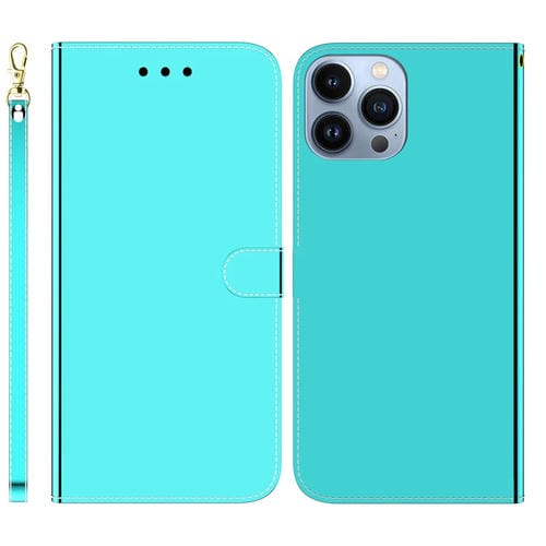 Estuche para Teléfono iPhone 15 Pro Max Cuero Superficie Espejo Imitado (Verde Menta)