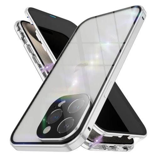 Estuche para Teléfono iPhone 15 Pro Max Vidrio Templado Magnético Doble Cara Anti-Peeping (Plateado)