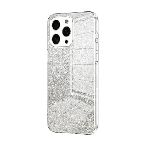 Estuche para teléfono iPhone 15 Pro Max galvanizado con purpurina en polvo degradado (Transparente)
