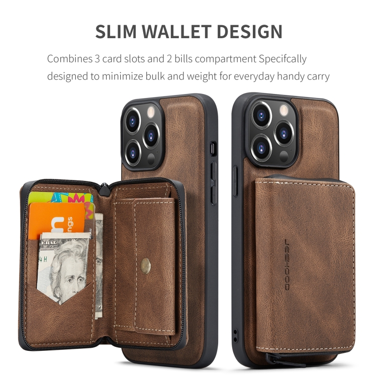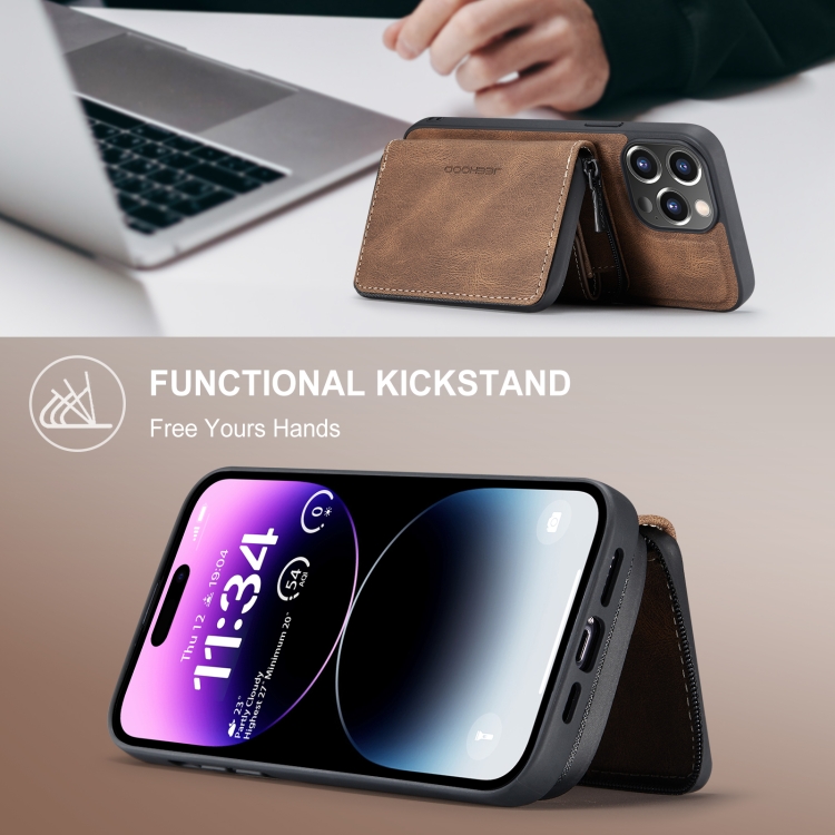 Funda de Cuero Jeehood para iPhone 15 Pro Max con Billetera y Cremallera Magnética (Marrón)