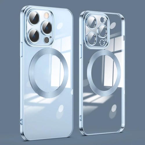 Estuche para teléfono iPhone 15 Pro Max Galvanizado con Lens Protector y Magsafe (Sierra Blue)
