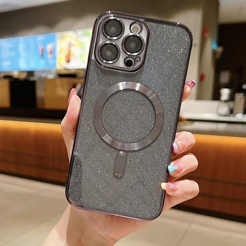 Funda para Teléfono iPhone 15 Pro Max Magsafe Glitter Galvanoplastia TPU (Negro)