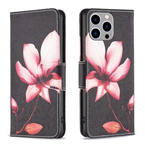 Funda para Teléfono iPhone 15 Pro Max Flip Cuero Patrón de Dibujo Coloreado (Lotus)