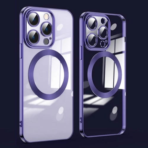 Protector de Lente + Estuche para Teléfono + iPhone 15 Pro Max + Magsafe + Galvanizado (Púrpura Oscuro)