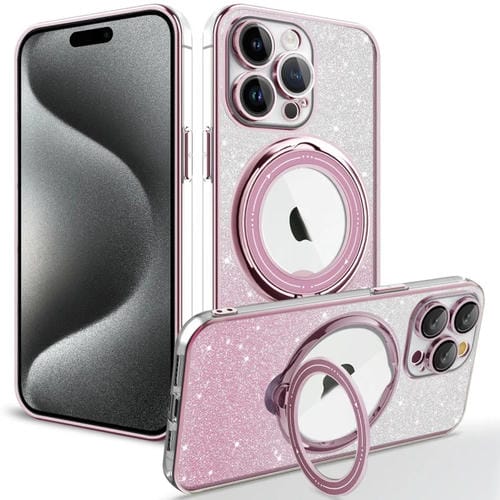 Estuche para teléfono iPhone 15 Pro Max Rotación Magsafe Holder TPU con Brillo Degradado (Rosa)