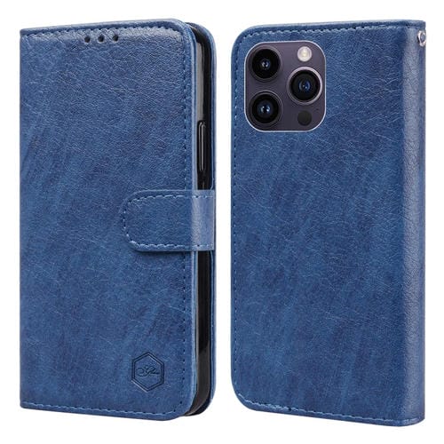 Funda para Teléfono iPhone 15 Pro Max Skin Feeling Oil Textura de Cuero PU + TPU (Azul Oscuro)