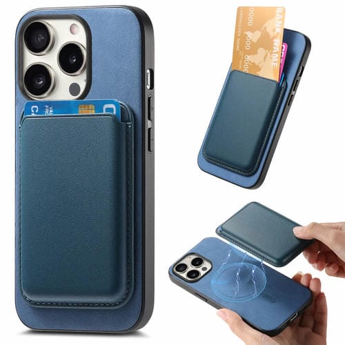 For iPhone 15 Pro Retro Magsafe Card Bag PU Leather Phone Case Back Cover (Blue)