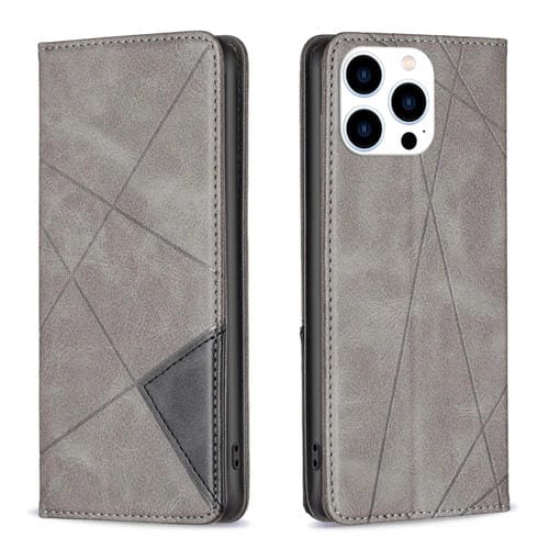 Funda para iPhone 15 Pro Rhombus Texture Leather Magnetic Phone Case (Gris)