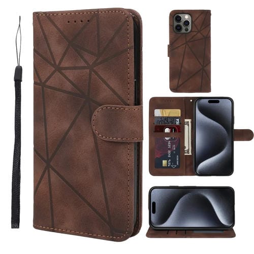 Funda para iPhone 15 Pro Skin Feel Cuero con Líneas Geométricas (Marrón)