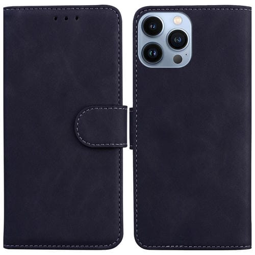 Funda Flip de Cuero para iPhone 15 Pro Skin Feel Pure Color (Negro)