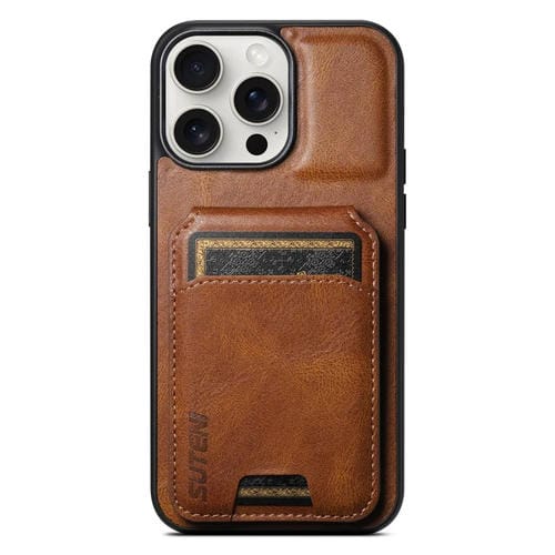 Funda para Teléfono Suteni H02 para iPhone 15 Pro con Soporte y Billetera (Marrón)