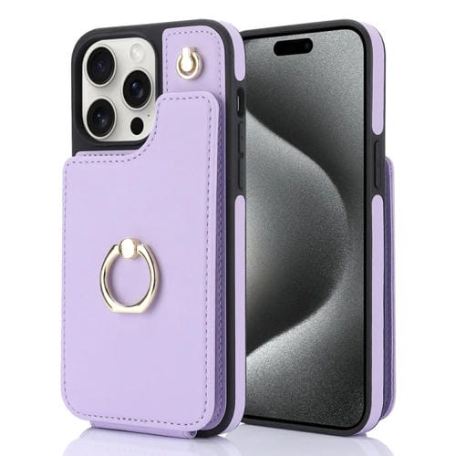 Funda para Teléfono Ym005 Skin Feel Card Bag para iPhone 15 Pro con Cordón Largo (Púrpura Claro)