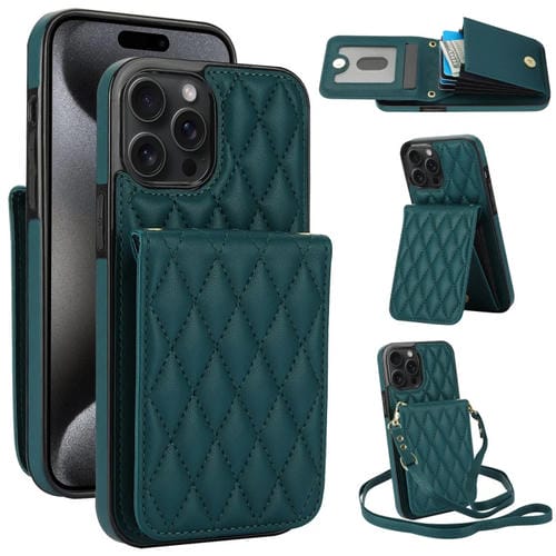Funda para Teléfono iPhone 15 Pro Ym015 Rfid con Bolsa para Tarjeta Romboidal Cruzada (Verde)
