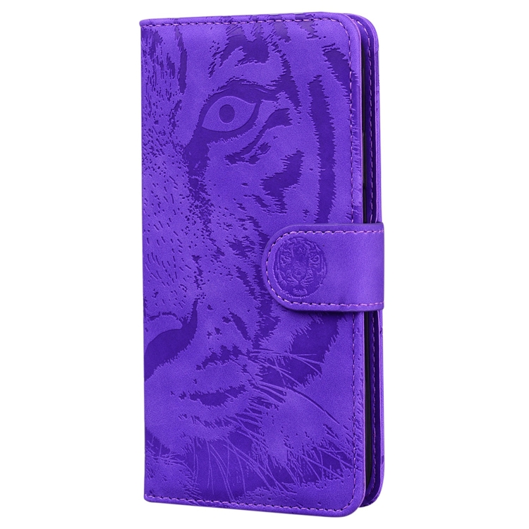 Funda para iPhone 15 Tiger Embossing Pattern Leather Phone Case (Púrpura)