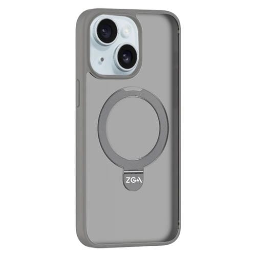 For iPhone 15 ZGA Magsafe Holder PC Hybrid TPU Phone Case (Gray)