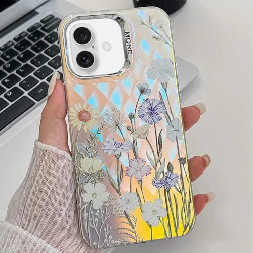 Caja del Teléfono TPU para iPhone 16 con Textura de Flor Láser de Galvanoplastia (Crisantemo Ah5)
