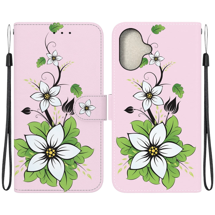 Funda de Cuero para iPhone 16 con Dibujo Coloreado y Textura de Cristal (Lily)