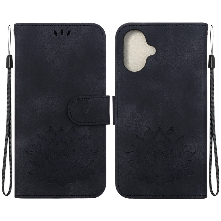 Funda para iPhone 16 de Cuero con Relieve de Loto (Negro)