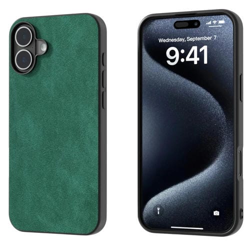 Funda para Teléfono iPhone 16 Cuero Pu Cobertura Total con Marco Negro (Verde)