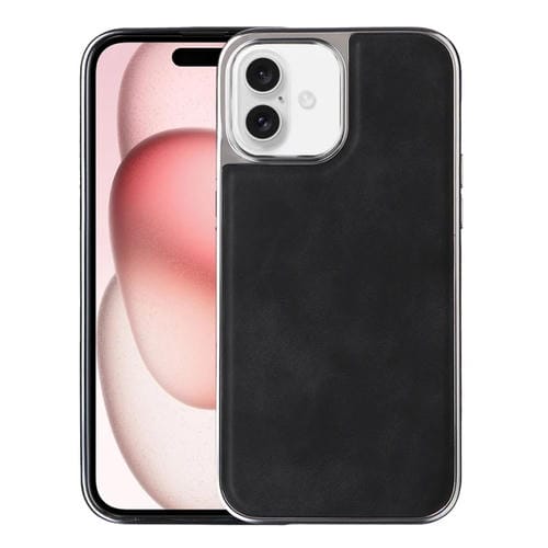 Estuche para Teléfono iPhone 16 Plus TPU Híbrido Pu Lateral Galvanizado (Negro)