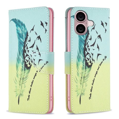 Funda para teléfono iPhone 16 Plus Cuero patrón dibujo colores (Pluma)