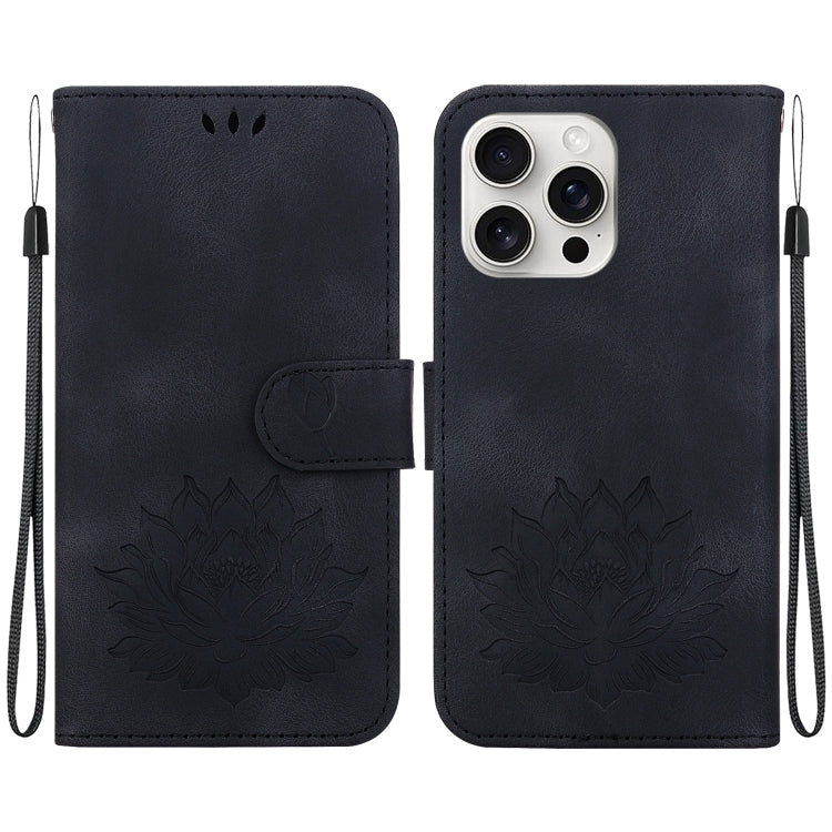 For iPhone 16 Pro Lotus Embossed Leather Case (Black)