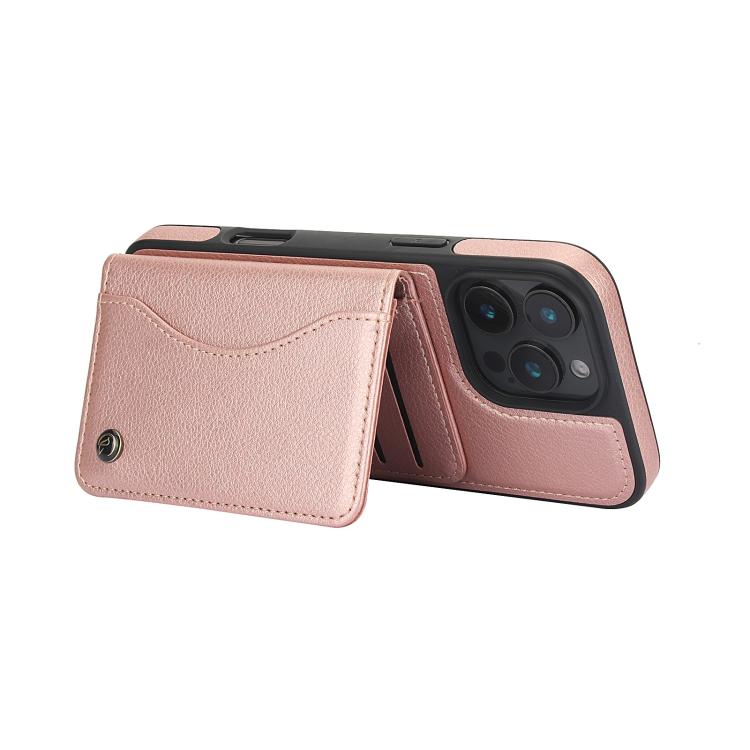 Funda para iPhone 16 Pro Max Awquer Cuero Tapa Horizontal Tarjetas Soporte (Oro Rosa)