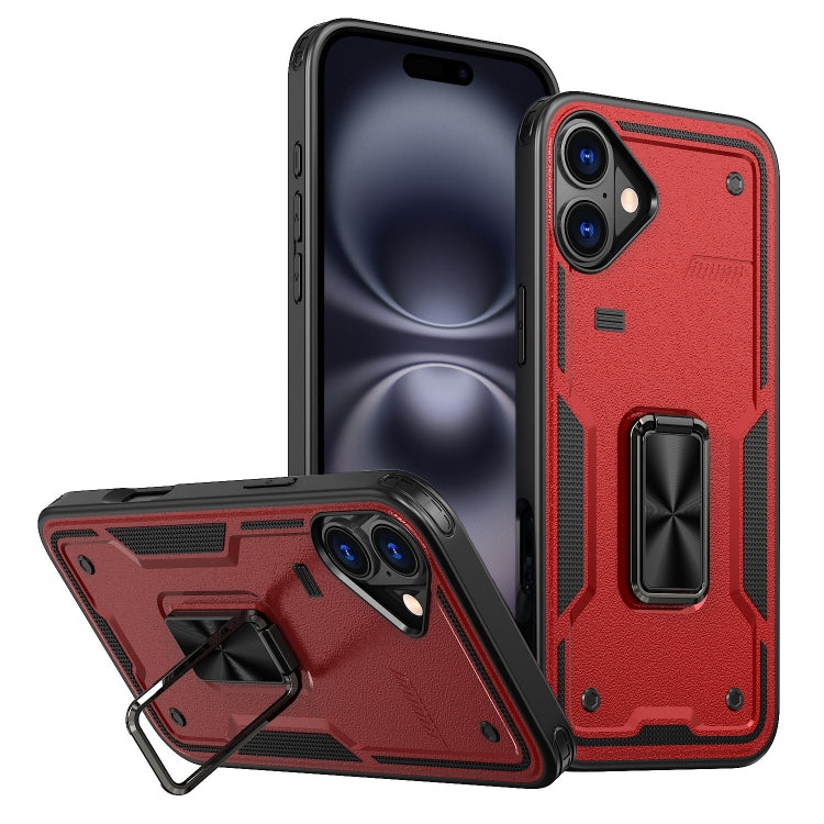 Funda de Teléfono híbrida para iPhone 16 Ring Holder PC TPU (Rojo)