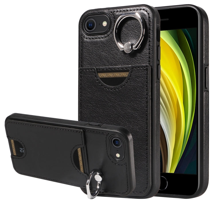Funda para Teléfono iPhone 2022/2020/8/7 con Soporte Anillo y Ranura Tarjeta (Negro)
