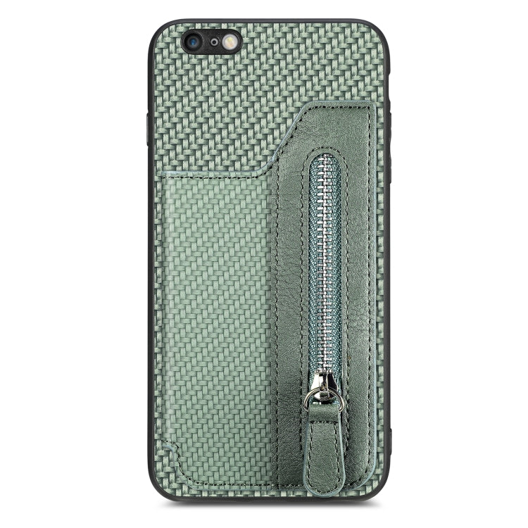 Funda de teléfono iPhone 6 6S con billetera cremallera horizontal fibra de carbono (Verde)