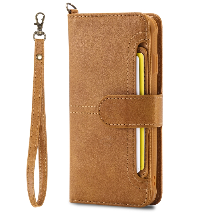 Funda para iPhone 6/7/8 Multifuncional Desmontable Magnética Horizontal Cuero Abatible con Ranuras para Tarjetas Soporte Billetera Marco de Fotos (Marrón)