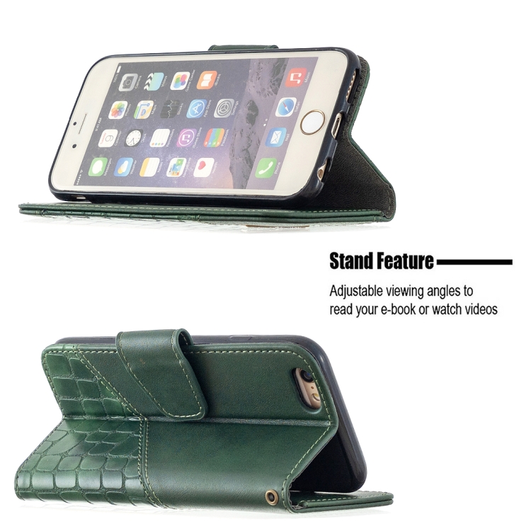 Funda para iPhone 6 Cuero de PU Textura de Cocodrilo con Tapa Horizontal Billetera Soporte Ranuras para Tarjetas (Verde)