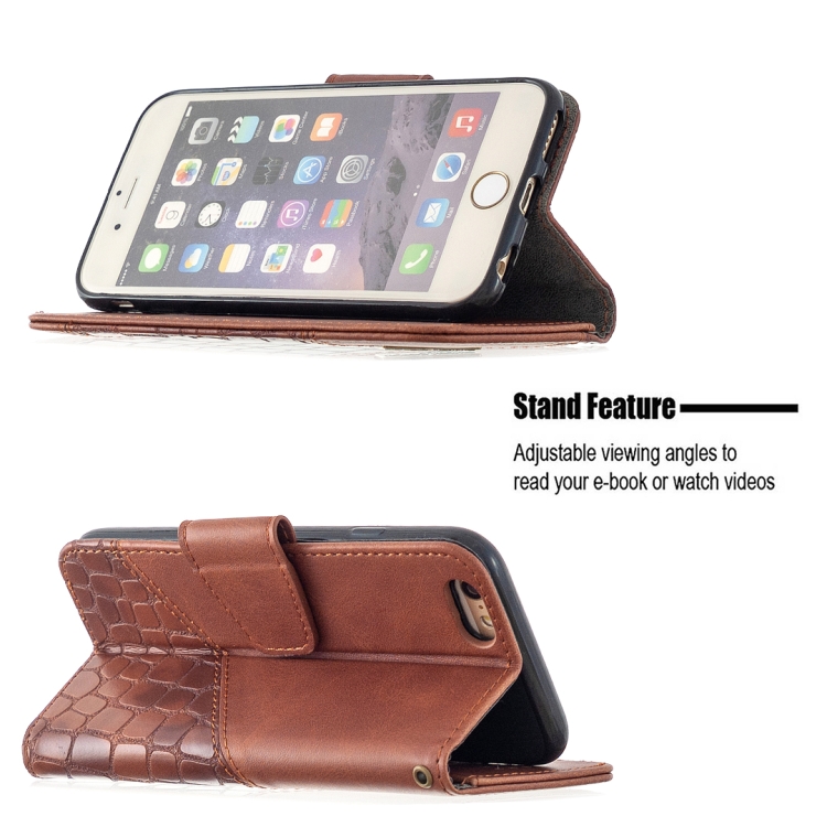 Funda para iPhone 6 Cuero Pu Textura de Cocodrilo con Tapa Horizontal Billetera Soporte y Ranuras para Tarjetas (Marrón)