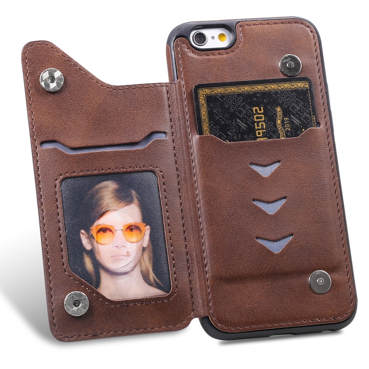 Funda Protectora para iPhone 6 con Textura de Pantorrilla, Soporte, Ranuras para Tarjetas y Marco (Café)