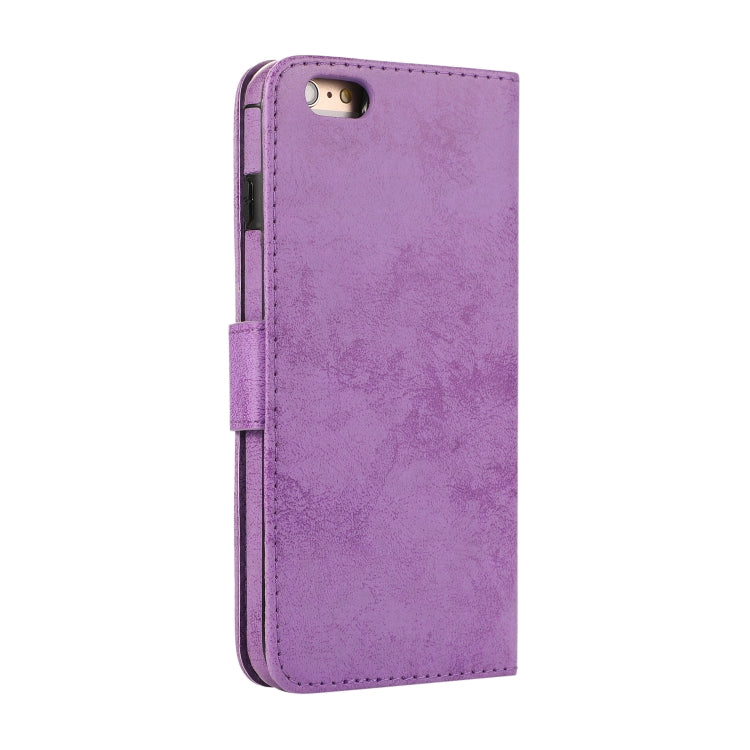 Funda para iPhone 6 Klt888-2 Retro 2 en 1 Cuero TPU + PU con Tapa Horizontal Magnética Desmontable Soporte Ranuras Tarjetas Marco Fotos Billetera (Púrpura)