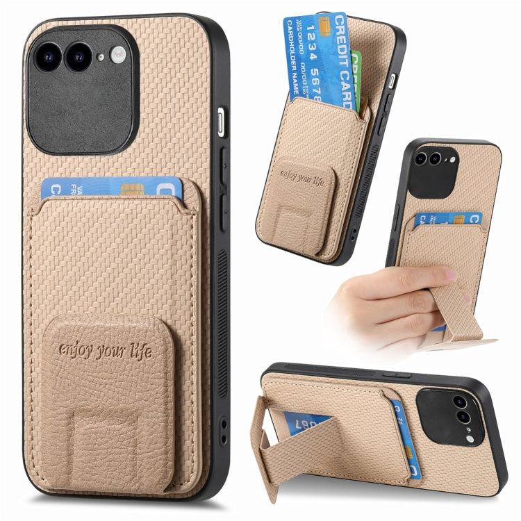 Funda para Teléfono iPhone 6 Plus 6S Plus Soporte Plegable Bolsa Tarjetas Fibra de Carbono (Caqui)