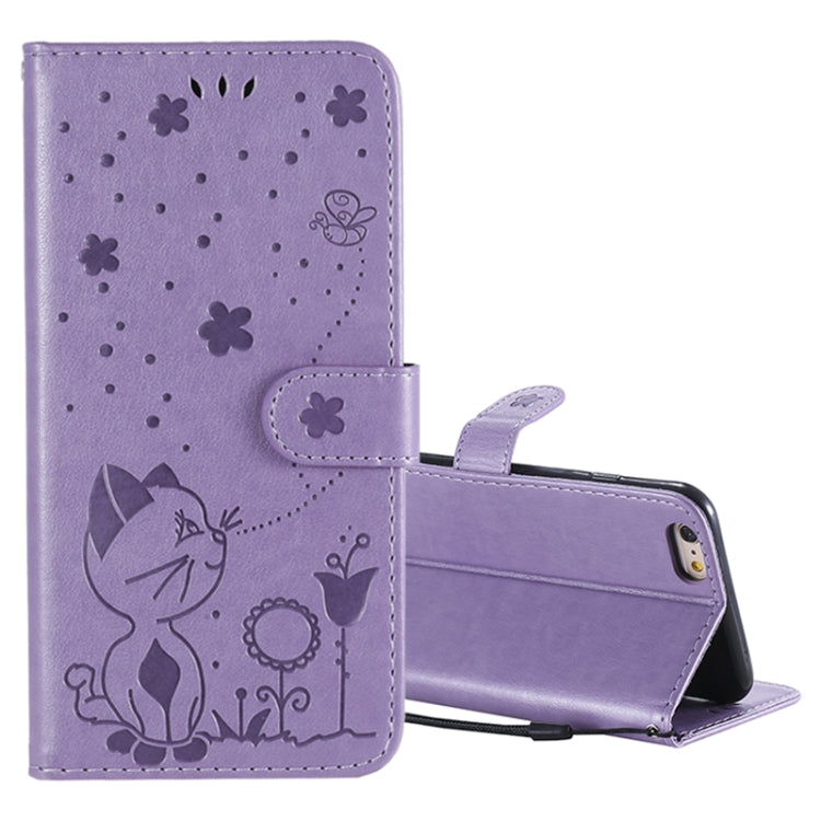 Funda de Cuero Cat Bee para iPhone 6 Plus con Patrón de Relieve, Tapa Horizontal, Soporte y Ranuras para Tarjetas (Púrpura)