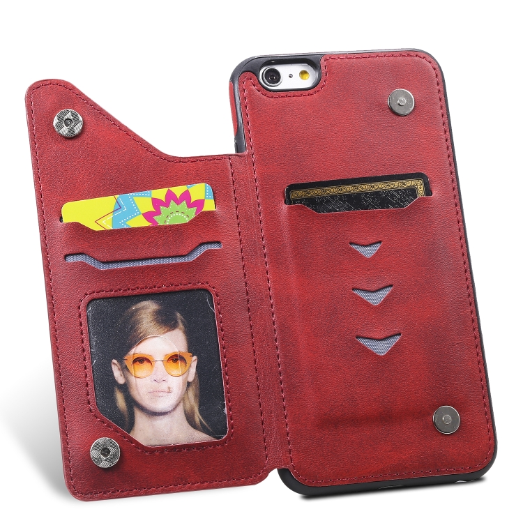 Funda Protectora iPhone 6 Plus Textura de Becerro a Prueba de Golpes con Soporte y Ranuras para Tarjeta (Rojo)