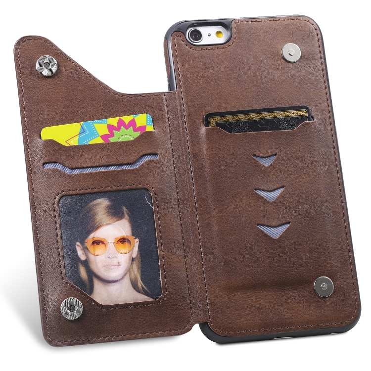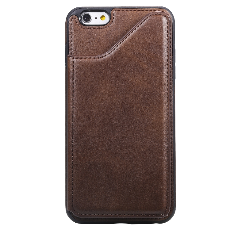 Funda Protectora iPhone 6 Plus Textura de Becerro a Prueba de Golpes con Soporte y Tragamonedas (Café)