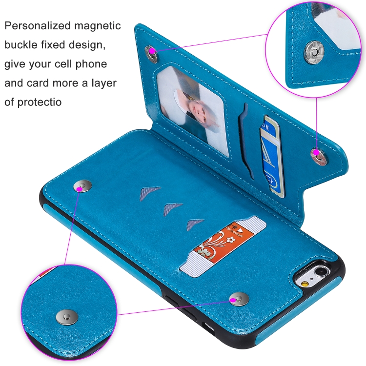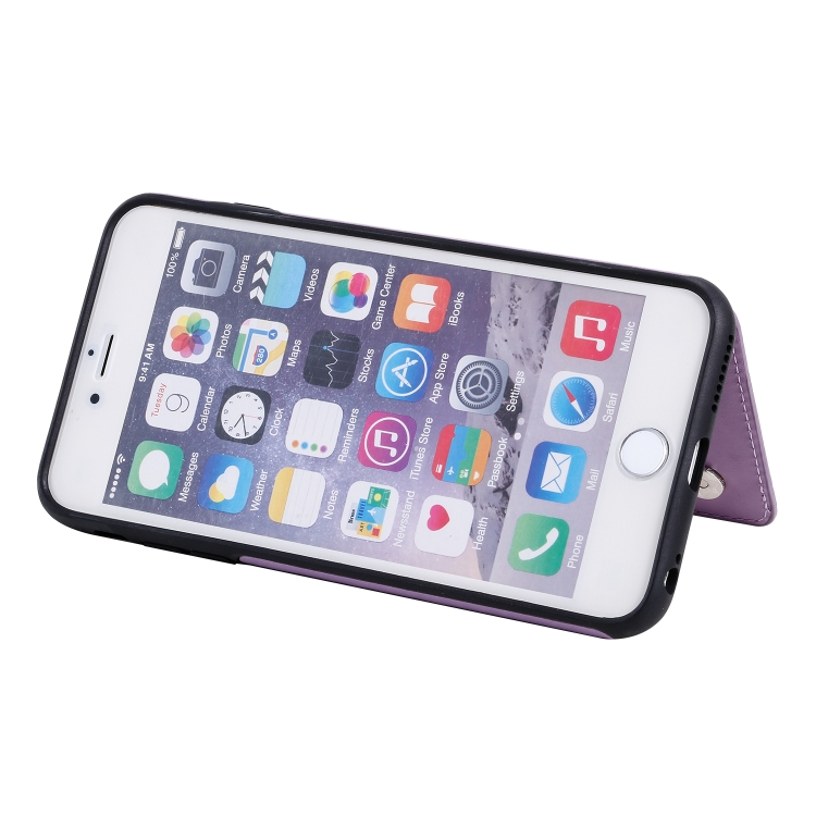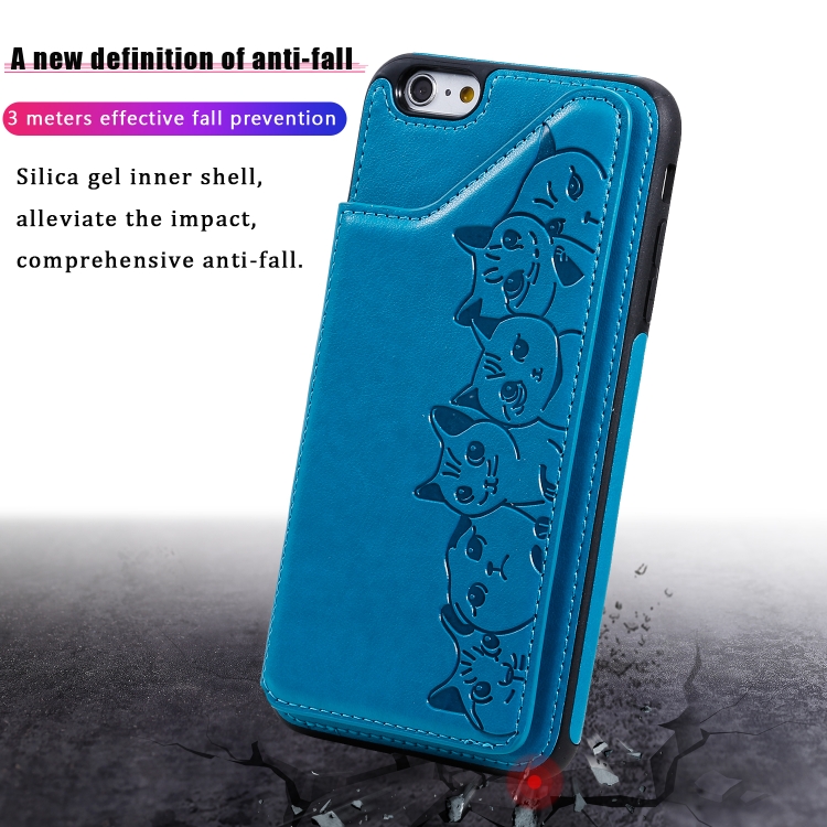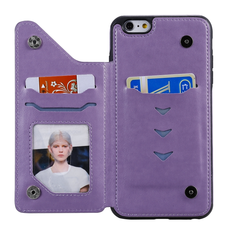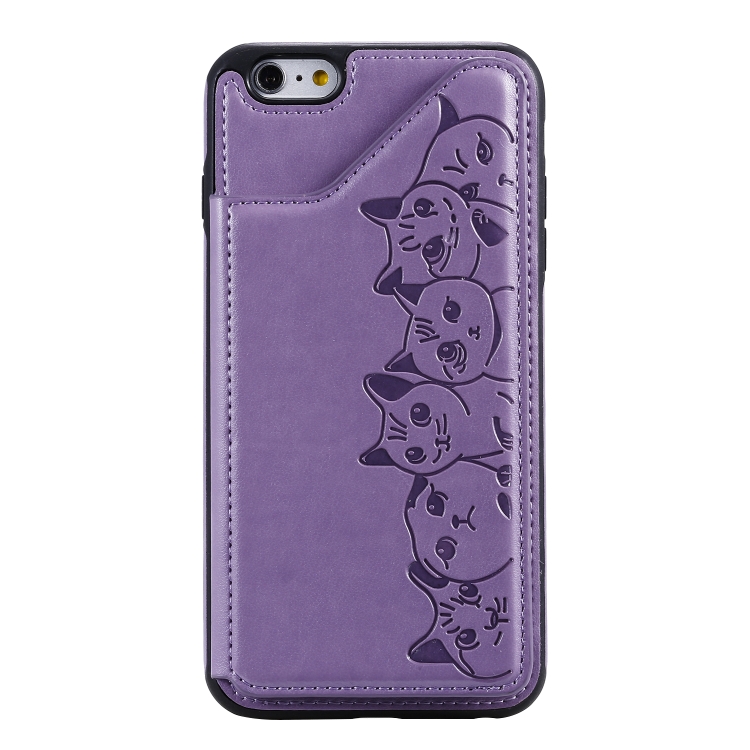 Funda para iPhone 6 Plus Seis Gatos con Soporte Ranuras para Tarjetas y Marco de Fotos (Púrpura)