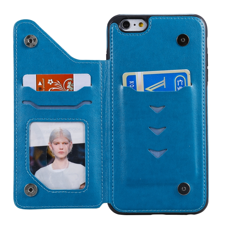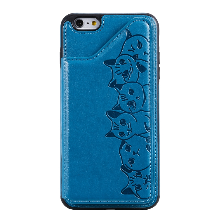 Funda para iPhone 6 Plus Seis Gatos Estampado con Soporte Ranuras para Tarjeta y Marco de Fotos (Azul)