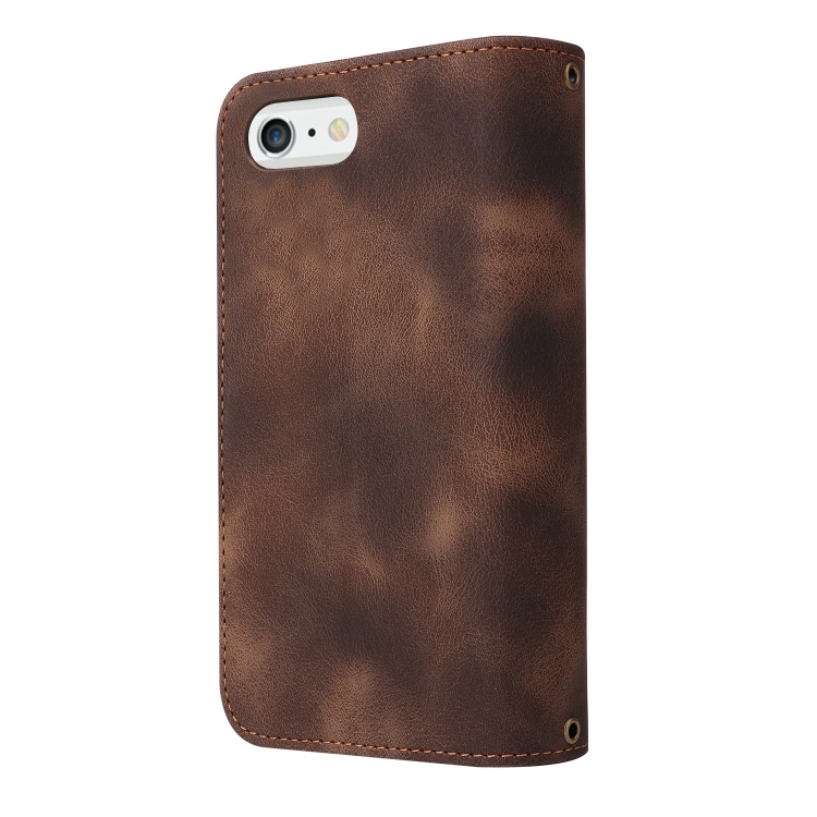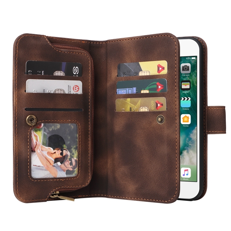 Funda de Cuero para Teléfono iPhone 6S Plus 6 Plus Monedero Multifuncional con Ranura para Tarjeta y Cremallera (Marrón)