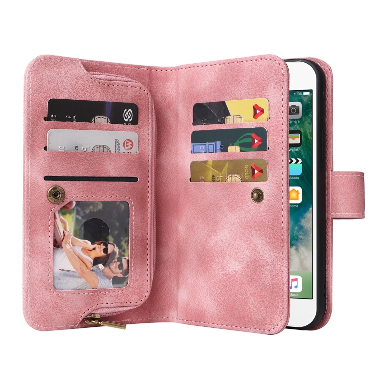 Funda para teléfono iPhone 6S Plus 6 Plus ranura tarjeta monedero cremallera cuero (Oro Rosa)